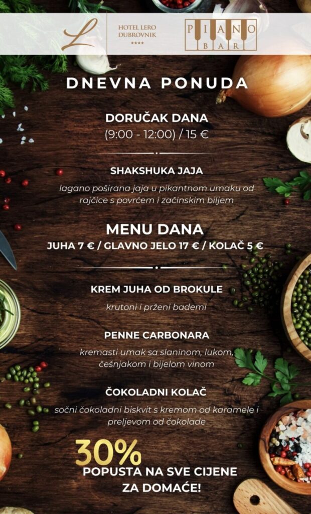 Piano bar – hotel Lero, Iva Vojnovića 14, Dubrovnik, kontakt 020 341 432, nema dostave