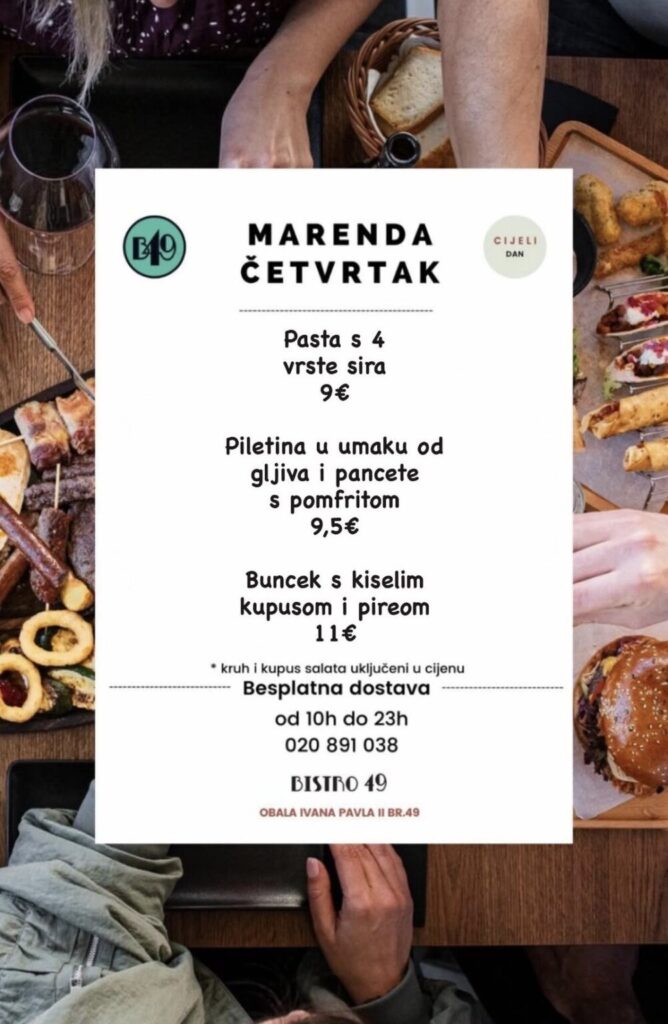 Bistro 49, Obala Ivana Pavla II, br.49, kontakt 020 891 038, moguća dostava