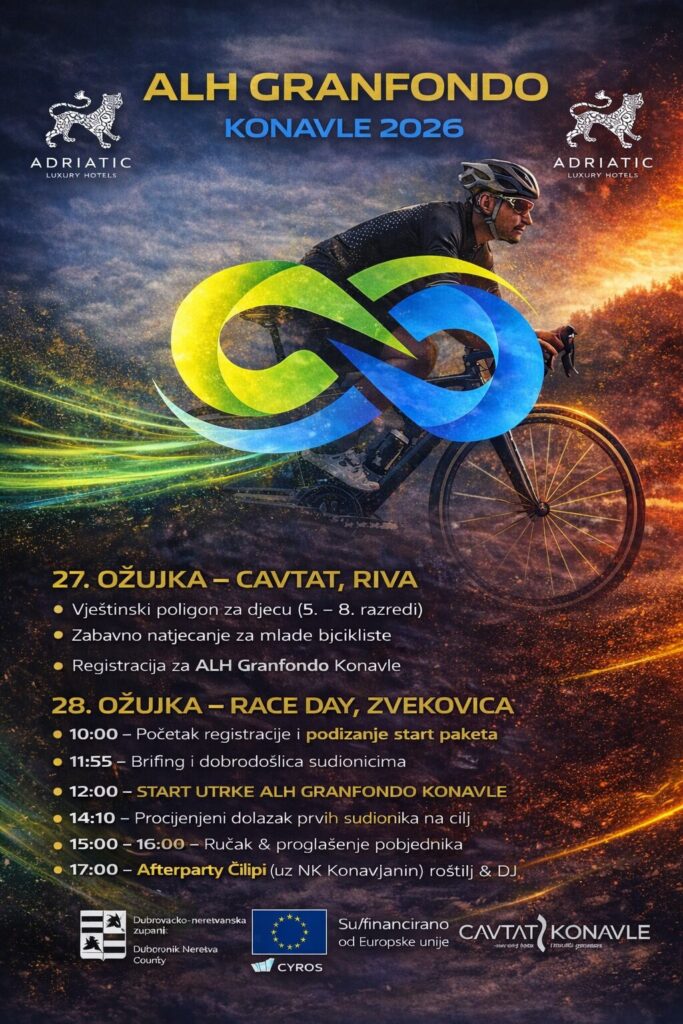 Biciklistički klub Konavle s ponosom najavljuje ALH Granfondo Konavle, koji će se održati u subotu, 28. ožujka, s početkom u 12 sati.