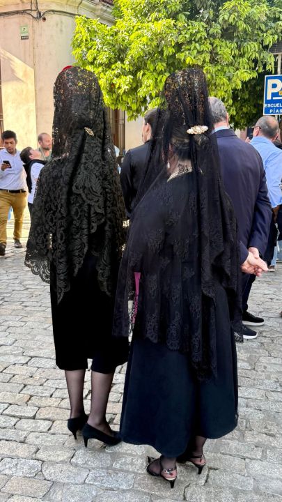 U procesijama na Veliki Četvrtak i Veliki Petak sudjeluju žene odjevene u crno, koje nose duge haljine, čipkaste velove i ukrasne češljeve. One simboliziraju žalost i poštovanje prema Djevici Mariji, ali i eleganciju i tradiciju.