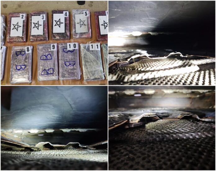 Policijski službenici Postaje granične policije Gruda u suradnji s djelatnicima carine pregledom vozila uočili su posebno prepravljen prostor u kojem se nalazilo skriveno više paketa oblijepljenih selotejp trakama nalik na pakiranja specifična za drogu kokain.