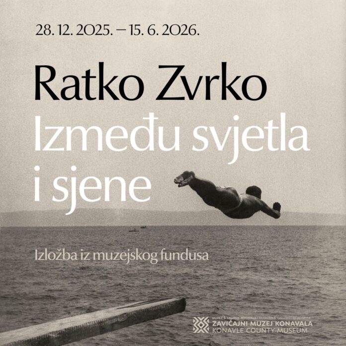 Zavičajni muzej Konavala poziva Vas na otvorenje izložbe RATKO ZVRKO – IZMEĐU SVJETLA I SJENE. Otvorenje će se održati u nedjelju, 28. prosinca 2025. u 19:30 sati u Zavičajnom muzeju. Autorice izložbe su Maris Stanović i Lucijana Mihaljek.