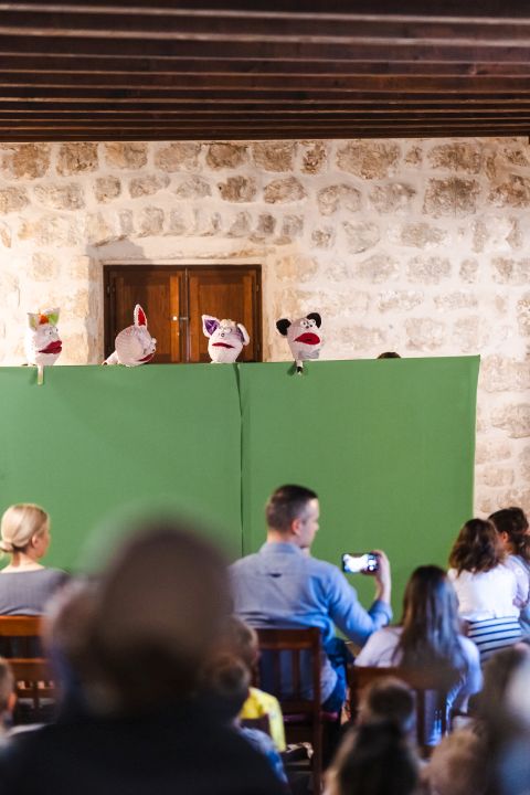 U popodnevnim satima program je nastavljen u Samostanu svetog Vićenca, gdje je izvedena lutkarska predstava ‘Tri praščića’ u izvedbi Udruge Aster. Za ovu veselu i poučnu predstavu doslovno možemo reći kako se tražilo mjesto više – najmlađa publika nagradila je naše lutkare velikim pljeskom! Župski pjat tako je i ove godine uspješno zaključen programom koji spaja edukaciju, tradiciju i kulturni sadržaj, uz veliki odaziv i zadovoljstvo sudionika.