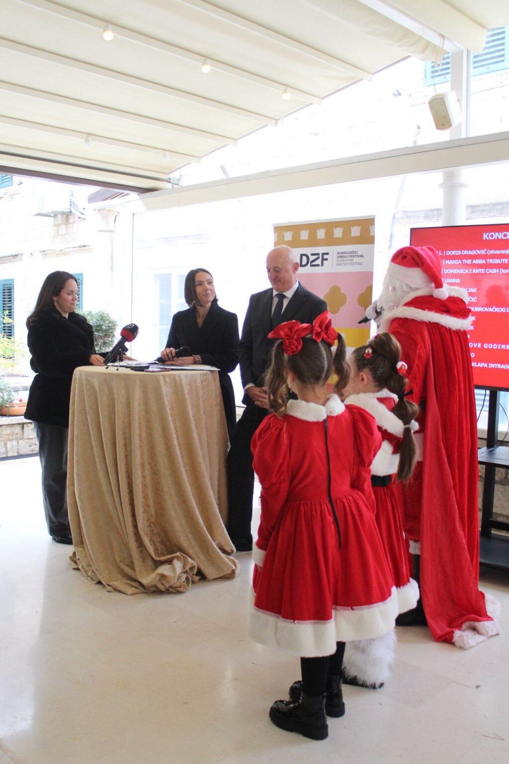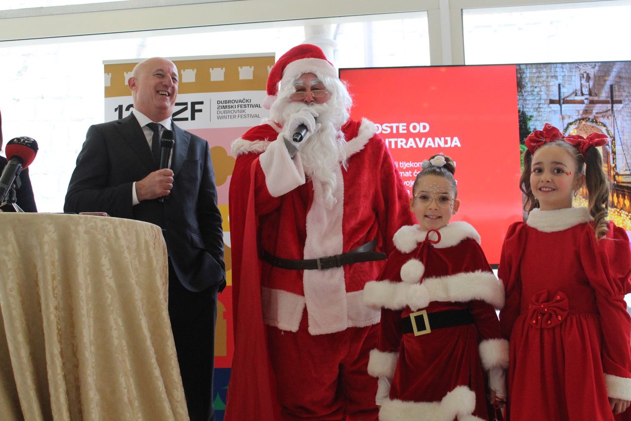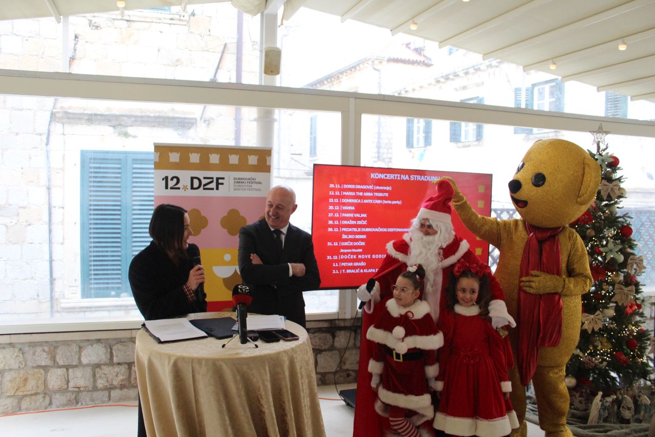 Sve se to moglo čuti na današnjem predstavljanju 12. Dubrovačkog zimskog festivala koji je predstavila pročelnica Upravnog odjela za kulturu i turizam Grada Dubrovnika Julijana Brautović Antić, direktor Turističke zajednice Miro Drašković, uz pomoć djeda Mraz i vesele maskote našeg festivala, meda.